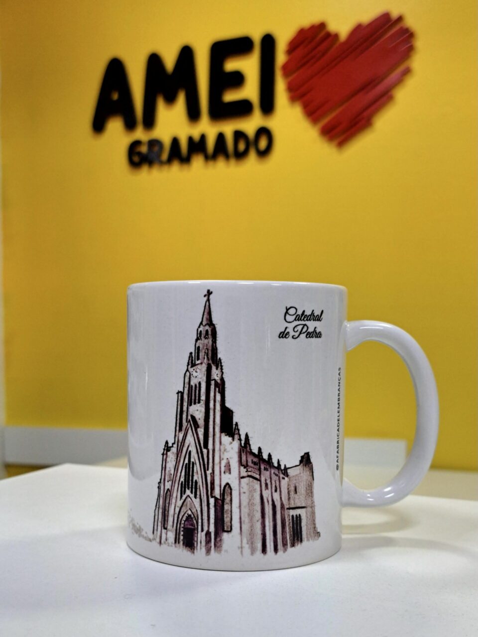 Esta caneca traz o afeto de Canela e a imponência de sua Catedral de Pedra, perfeito para um café ou chocolate quente cheio de memórias.