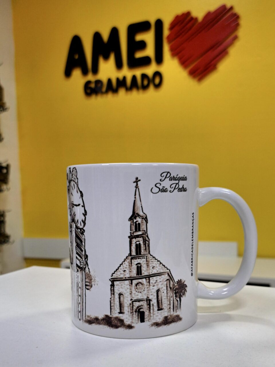 Esta caneca é um pequeno portal que te reconecta com a energia vibrante da Igreja São Pedro, permitindo reviver a atmosfera da cidade, não importa onde você esteja.